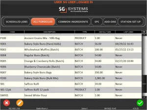 Hier werden verschiedene Informationen zu den im System vorhandenen Formeln angezeigt. Wie wir oben sehen können, umfasst dies Informationen wie den Formelcode und die Beschreibung sowie die Standardchargengröße und wann die Formel zuletzt mit diesem Fenster produziert wurde.