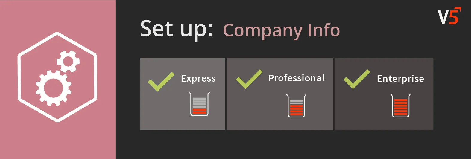 Der Abschnitt „Unternehmensinformationen“ des V5-Kontrollzentrums enthält Informationen über das Unternehmen des Kunden. Diese Informationen werden in verschiedenen Teilen von V5 Traceability verwendet, von der Berichterstellung bis zur Berechnung dynamischer Gemeinkostensätze, wenn diese Funktion aktiviert ist.