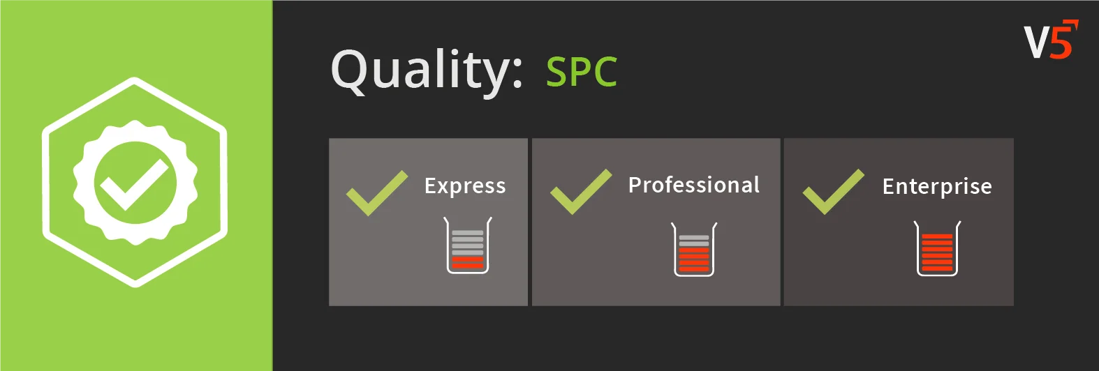LA section 'SPC' de V5 Traçabilité permet aux managers et superviseurs de planifier Contrôle des processus statistiques fonctionne sur n'importe quel produit du système.