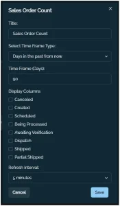 Parte della Suite di KPI di SG Systems, il KPI "Conteggio ordini di vendita" consente ai responsabili delle vendite di visualizzare il numero totale di ordini in vari stati di elaborazione semplicemente premendo un pulsante.