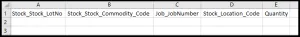 In genere, i file di intestazione vengono compilati da SG Systems prima che avvengano le integrazioni CSV, ma di seguito possiamo vedere un esempio di base di uno che possiamo utilizzare per l'assegnazione delle scorte: