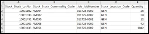 Esaminando l'endpoint 'StockAssignment', quando si arriva a strutturare un file di importazione di base per tutti e 5 gli ingredienti, potrebbe apparire qualcosa del genere: