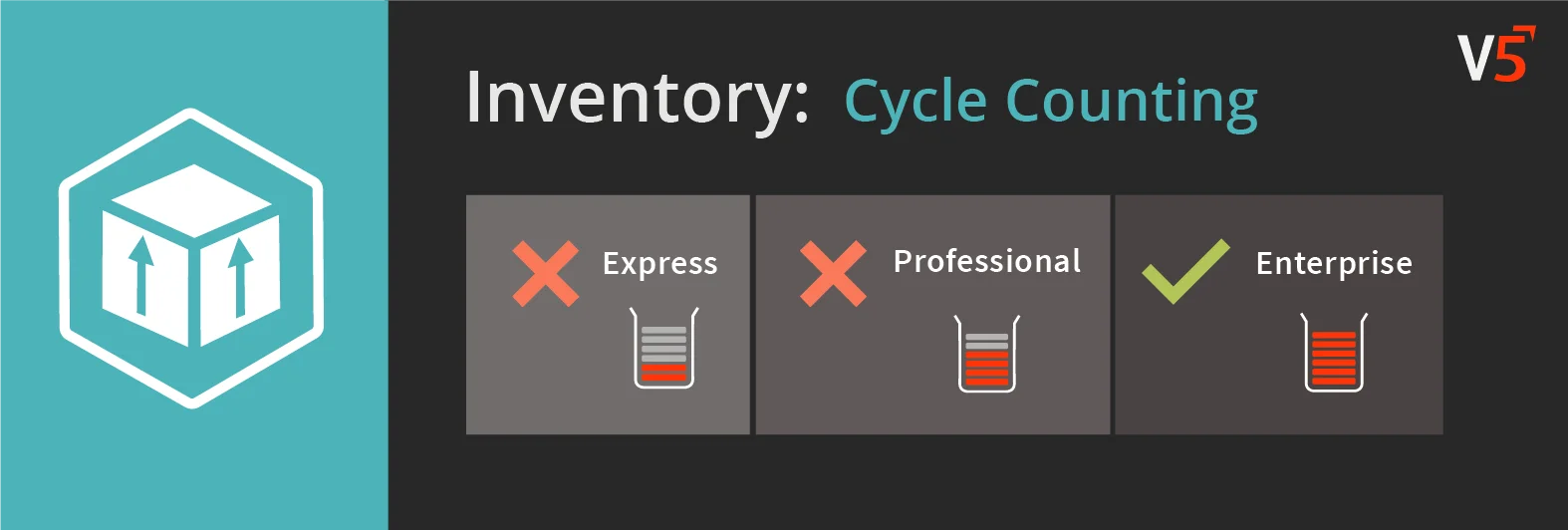 La sezione 'Cycle Counting' del V5 Control Center consente agli utenti di creare conteggi di cicli programmati, o stock take, per prodotti selezionati. Questi vengono quindi elaborati utilizzando il software WMS.