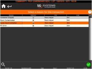 Qui possiamo vedere che l'operatore ha un motivo specifico per il conteggio dei cicli, e questo consentirà anche l'inserimento di testo libero, in modo che possano spiegare perché il livello delle scorte viene modificato.