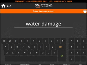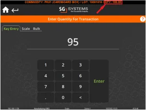 Durante il conteggio dei cicli, l'operatore WMS rileva che 5 scatole sono state danneggiate dall'acqua a causa di una perdita d'acqua nel magazzino. Possono quindi digitare il nuovo importo di 95 per questo lotto. Le opzioni bilancia e bulk sono disponibili anche qui a seconda del tipo di merce che stiamo contando/pesando.