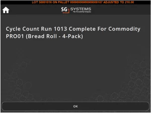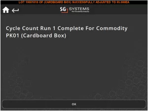Una volta inserito questo motivo, possiamo avere la possibilità di stampare un'etichetta di scorta sostitutiva per il lotto appropriato. Dopodiché l'esecuzione del conteggio dei cicli è completa! Se avessimo più lotti di questa merce, dovremmo contare il resto di questi prima che la corsa sia completa.