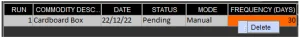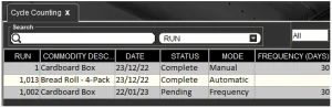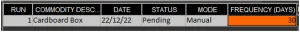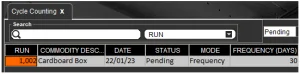 L'altra impostazione da tenere presente è la colonna "Frequenza (giorni)". Questo è il tempo che il sistema attenderà, dall'ultimo conteggio effettuato, prima che il sistema ne pianifichi automaticamente un altro. Qui diremo che vogliamo programmare un conteggio per questa merce ogni mese, quindi qui inseriremo 30.