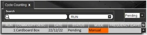 Con il conteggio di cui sopra pianificato, possiamo quindi andare al nostro dispositivo WMS per l'inventario e premere il pulsante "Conteggio ciclo".