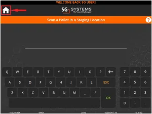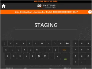 Dopo aver scansionato questo pallet, ci verrà chiesto di scansionare la posizione di destinazione per questo pallet. In questo caso immagineremo di avere 1x posizione di "staging" e 2x "banchine", quindi scansioneremo la posizione "STAGING" in cui spostare questo pallet.