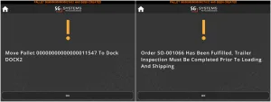 Tieni presente che questo è il comportamento predefinito del WMS e che è possibile che gli ordini vengano spediti automaticamente una volta completata l'ispezione del rimorchio da parte dell'operatore di prelievo. Questo è disponibile tramite una modifica della configurazione, quindi contatta il supporto SG per esplorare ulteriormente queste opzioni.