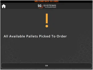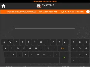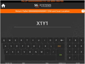 Ci verrà quindi chiesto di scansionare un altro pallet nella posizione di sosta. Questo è progettato in modo tale che se un altro dispositivo WMS sta assegnando mentre un altro preleva, il dispositivo di prelievo può scansionare pallet aggiuntivi che potrebbero essere arrivati in allestimento durante la fase di prelievo iniziale.