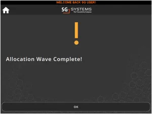 Una volta che avremo scansionato tutti i nostri pallet nella posizione di sosta, l'ondata di assegnazione sarà completata.