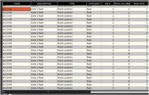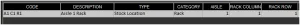 이 선반에 대한 V5 Traceability의 가상 모델을 구축하기 위해 더 많은 저장 위치를 '랙'으로 추가하여 이와 같이 계속할 수 있습니다. 1행 4열 선반유닛의 통로 6은 다음과 같습니다. '코드'는 고유해야 하지만 '설명'은 항목을 함께 그룹화하는 데 사용할 수 있습니다.