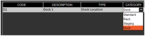 그런 다음 '카테고리' 열의 드롭다운 메뉴를 사용하여 이것이 어떤 유형의 재고 위치인지 결정해야 합니다.