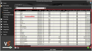 A integração de Commodities (Ingredientes/Embalagens/Matérias-primas/SKUs) entre V5 Traceability e um sistema ERP do cliente permite que detalhes de commodities, como custos, unidades, prazos de validade padrão, etc., sejam enviados para V5 Traceability.