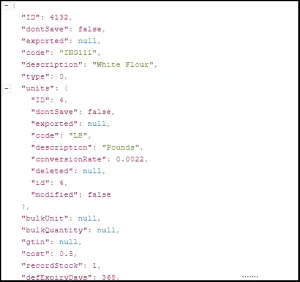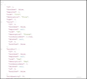 Podemos ver aqui um exemplo de uso de classes aninhadas relacionadas ao ‘Commodity’ ponto final. Neste caso, incluímos o recuo ‘units’ e ‘bulkUnit’ pontos de dados, permitindo-nos definir a UM padrão da mercadoria, bem como sua unidade a granel. Uma vez que ambos fazem uso do ‘WeightUnit’ class, podemos usar o manual da API V5 para nos guiar até esses pontos de dados usando o seguinte caminho: