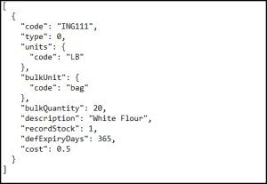 bulkQuantity - O valor da UM padrão (units.code) da mercadoria vai para a unidade a granel acima (por exemplo, '20' para isso e 'Bag' inserido para a bulkUnit, com uma unidade padrão de 'lb' significa em 1 Saco de esta mercadoria há 20 libras).