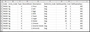 Para esta importação de amostra, usaremos o ‘Commodity’ endpoint e estruturar um arquivo de importação básico para uma única mercadoria, isso pode ser algo como isto: