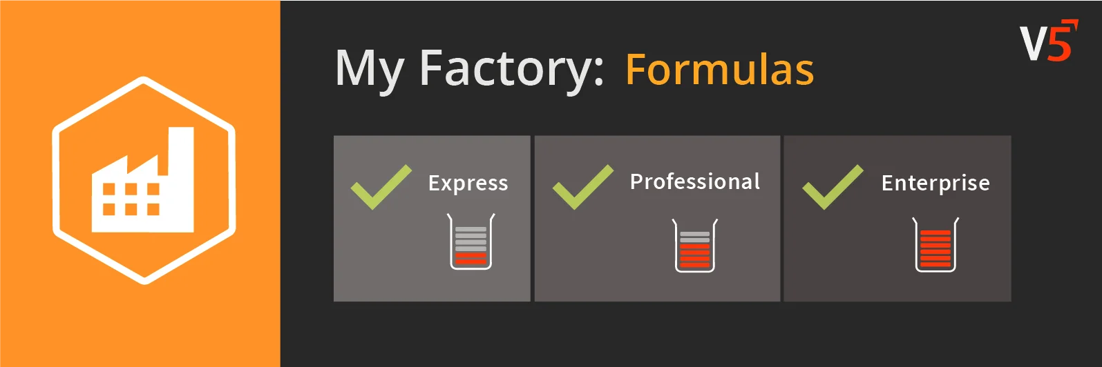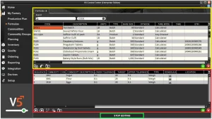 A seção 'Fórmulas' do V5 Control Center permite que os clientes criem ou importem suas receitas/fórmulas para o banco de dados SG. Esses dados são então referenciados pelo sistema para criar trabalhos e execuções de produção.