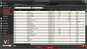 A maneira mais simples de criar commodities é usar o próprio Control Center. Podemos fazer isso navegando para Mercadorias sob o cabeçalho 'Minha fábrica' (1) e abrindo esta guia. Podemos então clicar em 'Editar tabela' na parte inferior da página (2) e, se o usuário logado tiver a permissões, podemos então usar o '+' verde no canto inferior direito da janela (3) para adicionar uma nova linha/uma nova mercadoria. Uma nova linha será gerada para que possamos preencher com as informações vitais da mercadoria.