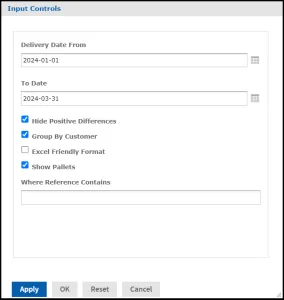 Ocultar diferenças positivas – Marcar esta opção mostrará apenas itens com diferença de estoque negativa em relação ao que é necessário para o(s) pedido(s), ou seja, itens que são necessários para o(s) pedido(s).