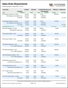 Agrupar por cliente – Divide os requisitos por cliente por item. Também mostra uma 'Data necessária' para cada cliente para auxiliar na programação da produção.
