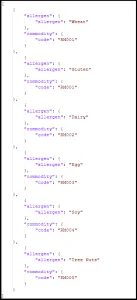 Используя конечную точку «AllergenLink», мы можем структурировать файл импорта для вышеуказанных дополнений следующим образом: