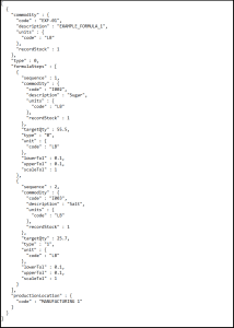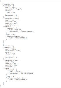 commodity.units.code – The weight unit the formula is to be produced in. If not stated this will create the formula in the database’s default unit of measure.