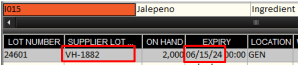 If we run the JSON file above, we will see that our lot for commodity ‘I015’ (Jalepenos) now has this lot imported to Control Center.