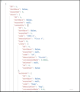 If we run this request as ‘true’ (so http://host:port/V5-API/api/integrate/export/stock/true) , we will get a file that looks something like this: