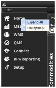 For v5.9 SG Systems have implemented a 3 tier menu system. Each section can be accessed individually but can also be expanded or collapsed all at the same time by right-clicking anywhere in the menu area and selecting ‘Expand All’ or ‘Collapse All’: