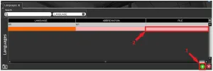 So here let’s add another language here, in this case Spanish. To do this we need to add a new row (1), name it, and then double click in the ‘File’ field (2) to open a text upload box.