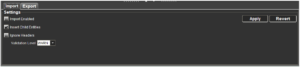 Both the import and export windows feature an ‘Apply’ and ‘Revert’ Button. This allows settings to be changed and then applied (or reverted to the previously applied configuration), after which Control Center will need to be restarted for any changes to become active.