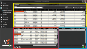 The ‘Manage Inventory’ section of the V5 Control Center allows users to view stock levels of all commodities that are entered into V5 Traceability. Individual lots of commodities can also be viewed, along with their associated containers. Non-palletized items can be adjusted and added here, whereas palletized items cannot, they can only be zero’d. For further information on inventory management of non-palletized commodities, click here. A guide to managing pallets and their contents is also available here.
