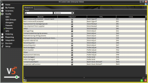 The ‘Reasons’ section of the V5 Control Center software allows customers to create sets of custom explanations for particular actions. These Reasons can then be selected by operators at various points in the WMS and Terminal software to explain a particular action. This streamlines the efficiency of operators as they are able to make fast selection prompts from options pre-defined by management.