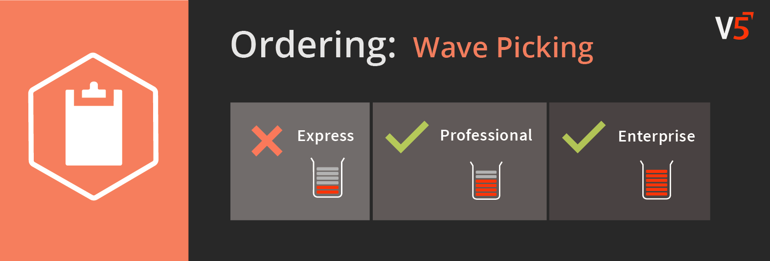 The ‘Wave Picking’ section of the V5 Control Center works in conjunction with ‘Sales Orders’ and ‘Locations’ to allow for the efficient picking and packing of items for sales orders. It allows multiple order that contain the same or similar products to be grouped together, so instead of picking one order after the other, the WMS operator will be guided around the warehouse in the most efficient manner to pick multiple orders at once. This panel relates to B2C wave picking. if you are using B2B wave picking, see our wave picking module guide.