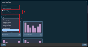 After which we will be taken to the KPI creation screen. We should first enter a name for our new KPI page (1 – required). Let us imagine here that we are creating a KPI page for a Sales Manager, so we will call it ‘Sales Performance’.