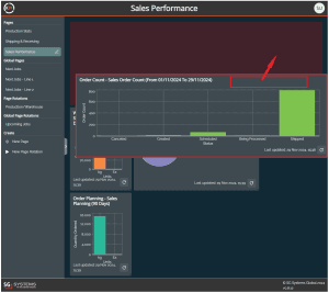 To drag and drop a KPI, all we need to do is click and hold in a neutral area of the KPI (so not over any of the generated graphs/the refresh button/the resieze button (see below) and drag it into a new position. A red shaded area will indicate the space that the KPI will be dropped into.