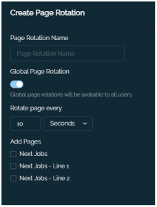 Page rotations make use of existing KPI pages, so we must have at least 2 of these already present before we can create a page rotation. The same is true for global page rotations.