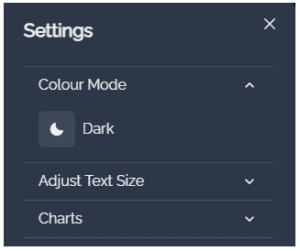 We also have additional accessibility/viewing options to further customize a user’s viewing experience while using the V5 KPI. These can be accessed via clicking on the user icon in the top right of the KPI page.