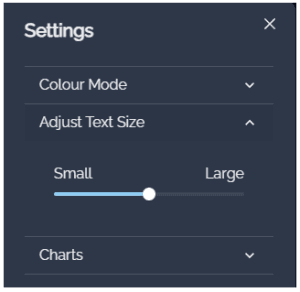 The second is a slider to increase or decrease text size, useful for viewing KPIs on larger or smaller displays, depending on where they are being displayed.