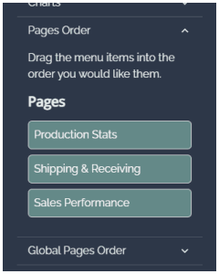 The settings menu also contains options for rearranging the order of our saved KPI pages and page rotations. We would need to have some KPI pages or page rotations created for these options to be visible in this menu.