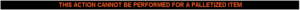 As mentioned above, the functions here can only be performed on commodities that are not palletized. If we try to select a lot of a palletized item we will get the following message in WMS’s messaging banner: