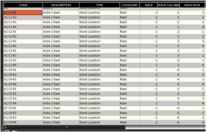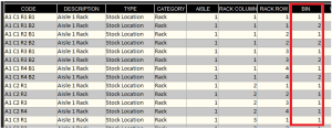 We have specified Bin 1 for the remainder of the racks, but this is not strictly necessary. However, if these locations are to be used for Wave Picking stock for Sales Orders or Transfers, then we need to have entered the full Aisle + X/Y/Z (column/row/bin) designations for each rack location that needs to be used.