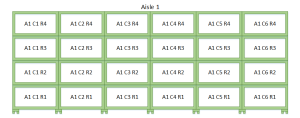If we then translate this to an X/Y coordinate for Aisle 1’s rack unit, on the rack itself this would look something like this.