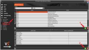 Once here, groups can be created in the top panel (1), and once these are created and selected, operators can be added to these groups in the bottom panel (2).
