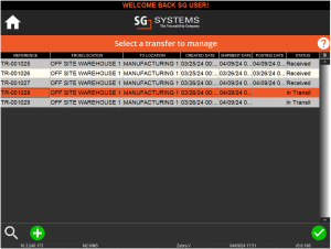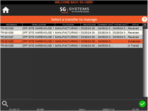 In this case, transfer 1028 has been picked by a warehouse operator, so if a supervisor were reviewing this order they would be able to ship the transfer at this point, making it available to receive at the receiving location. Note that a ‘review mode’ similar to what we saw for the purchase and sales managers where order lines can be reviewed is not available for transfers.