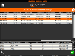Looking first at ‘Purchase Manager’, if we hit this hex we will be prompted for filter from and to dates to capture orders.