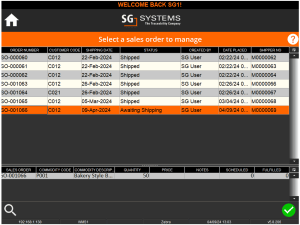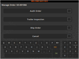 Ship Order – Enables the supervisor to ship (or partially ship) an order that has already been picked, either by the standard picking method (link to SO piece) or via wave picking (link). Depending on the setup of the WMS that picks the orders, orders can then either be dispatched automatically after the orders are picked, or can be completed with the ‘Awaiting Shipping’ status that we can see above for order 1066. The latter setup allows supervisors to benefit from this order management screen, allowing them to audit and ship orders (as well as enter trailer information and perform inspections) separately from the picking process.