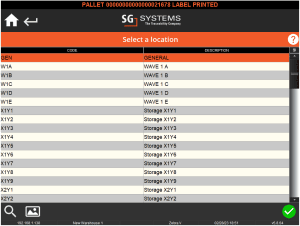 Allows us to move a pallet from one location to another, either by selecting or scanning the relevant location. WMS can be configured here to only be able to see locations that are assigned to it in ‘App Licenses’, or see a selection of all locations to move our pallet to.